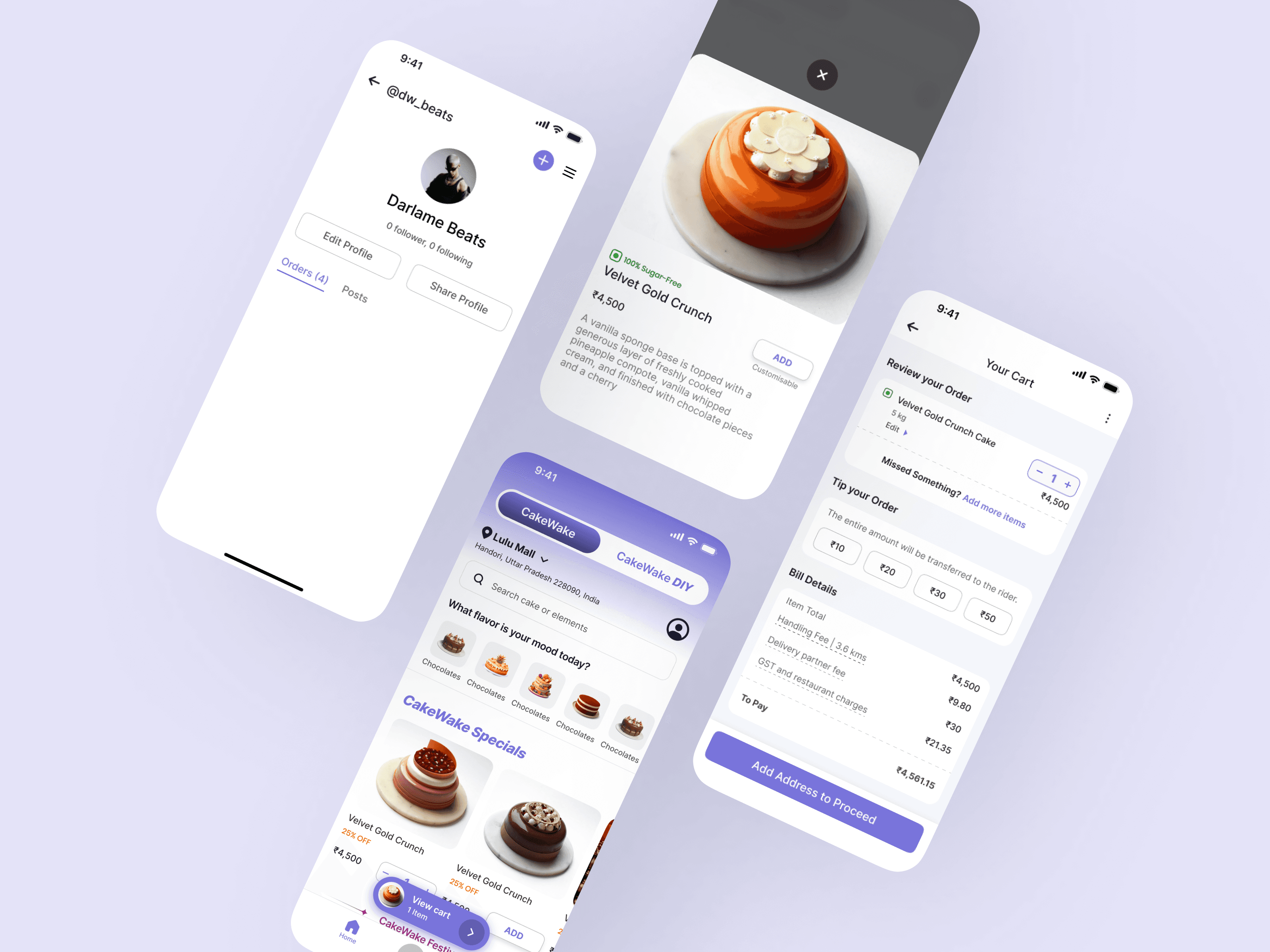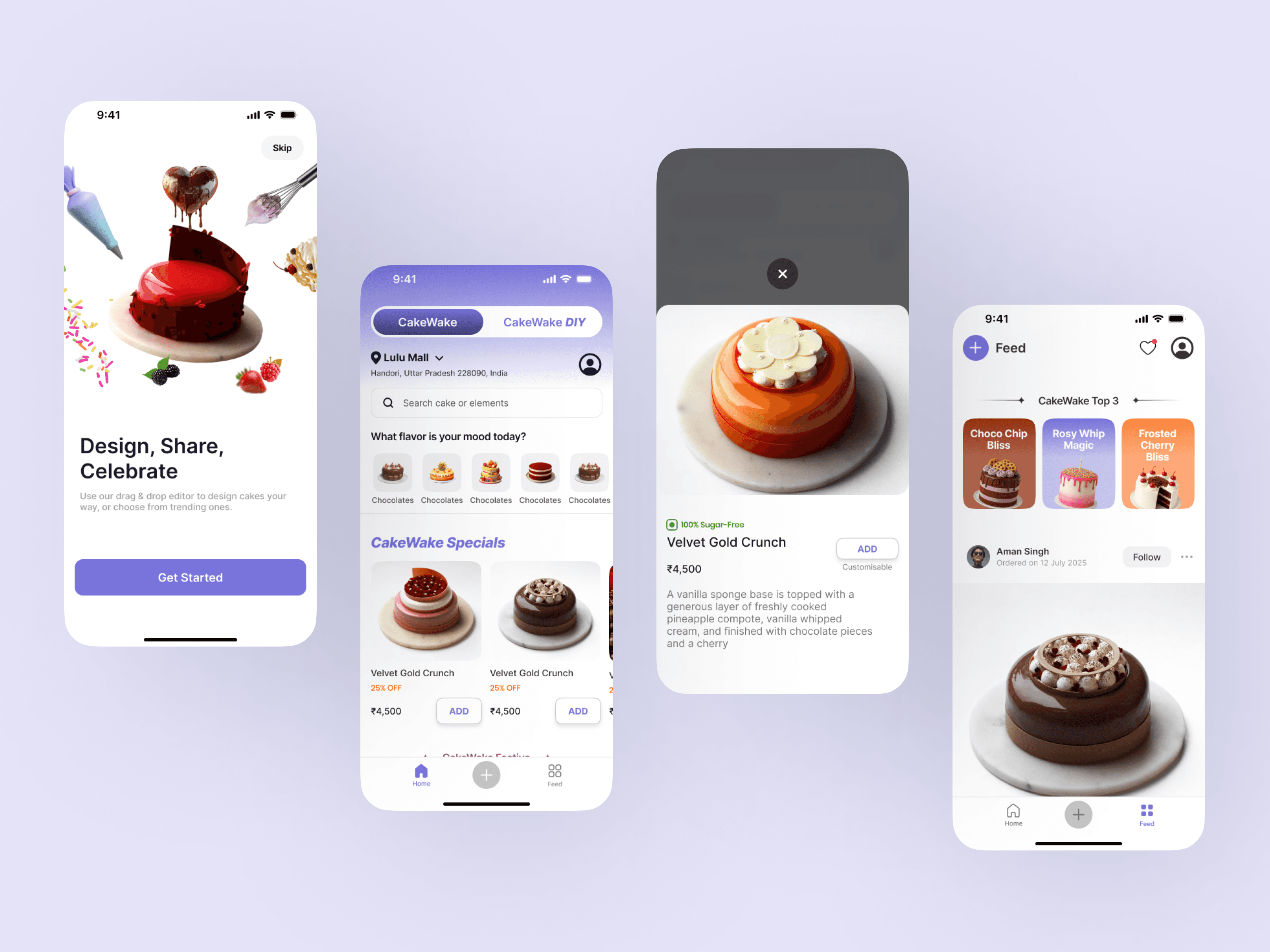 User App: Designed intuitive, visually appealing, and easy-to-navigate screens for customers to browse, customize, and order cakes.