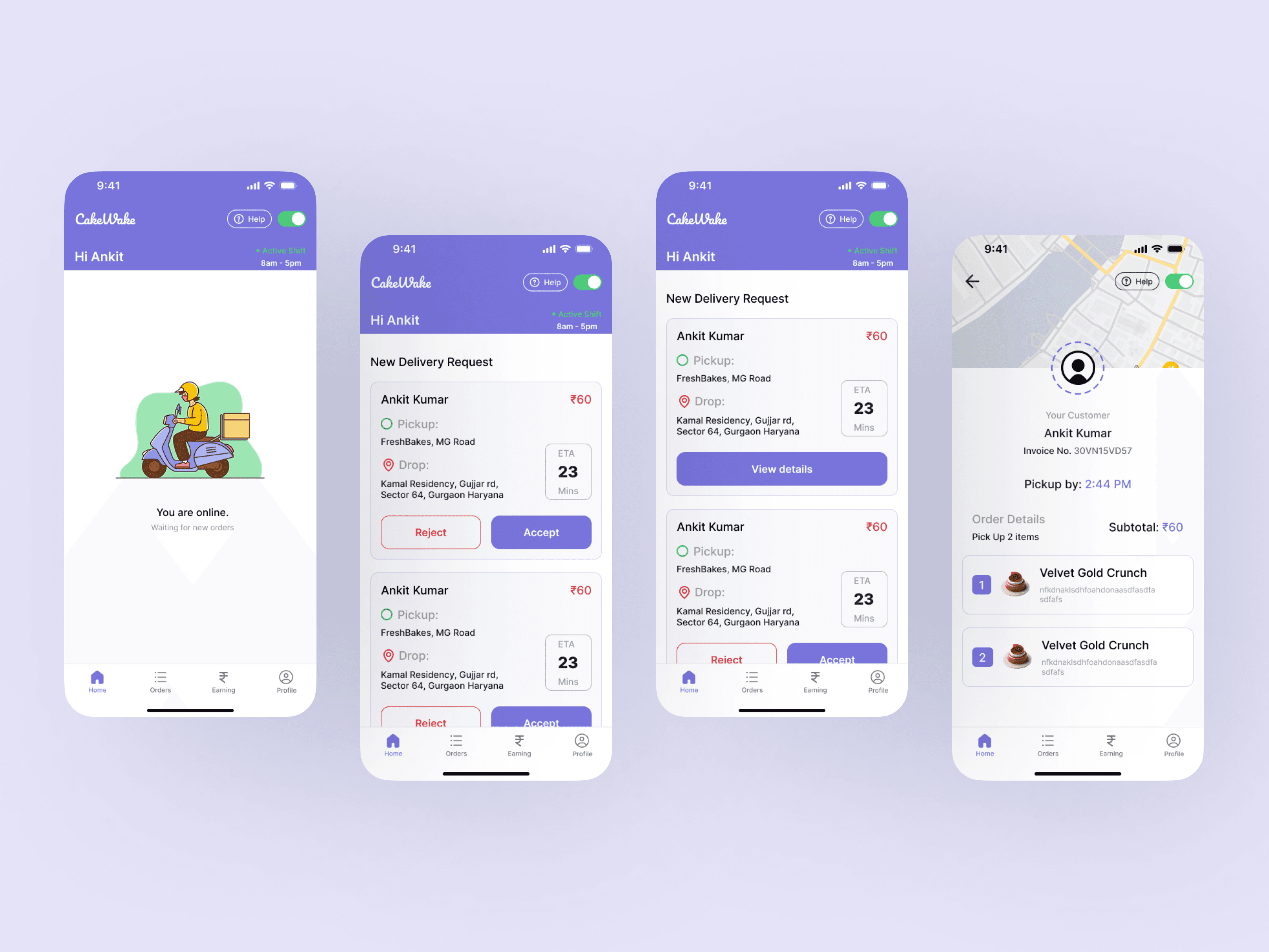 The Delivery Partner App was designed to help delivery agents manage cake deliveries with maximum efficiency and minimum confusion. The app focused on clarity, simplicity, and real-time status updates to support fast-moving on-ground operations.